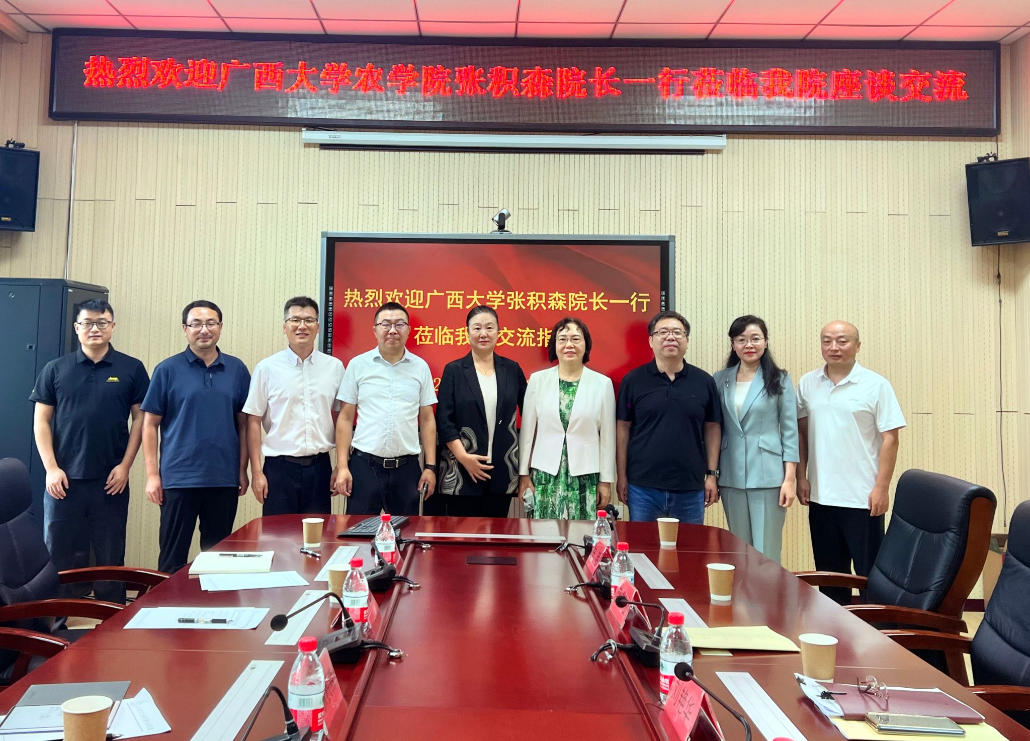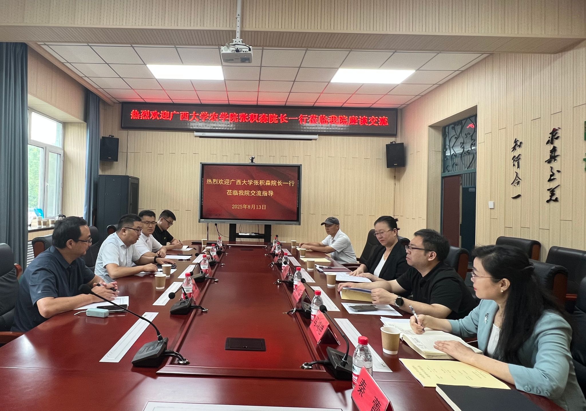 8月13日,广西大学农公司经理张积森、副经理邹承武、园艺系主任罗聪、助理教授张俊威一行4人来公司考察交流。公司党委书记刘艳华、经理高鹏、副经理马鸿艳、二级教授栾非时、园艺系主任辛明、经理助理秦蕾参加活动。