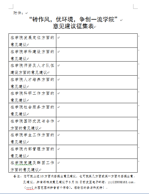 二、公司建设发展,全院人人有责。请全院师生员工特别是教职工积极踊跃参加此次活动。请各党支部书记,各系、办、中心、实验室负责同志,做好此次意见建议征集活动的动员、宣传和组织工作。