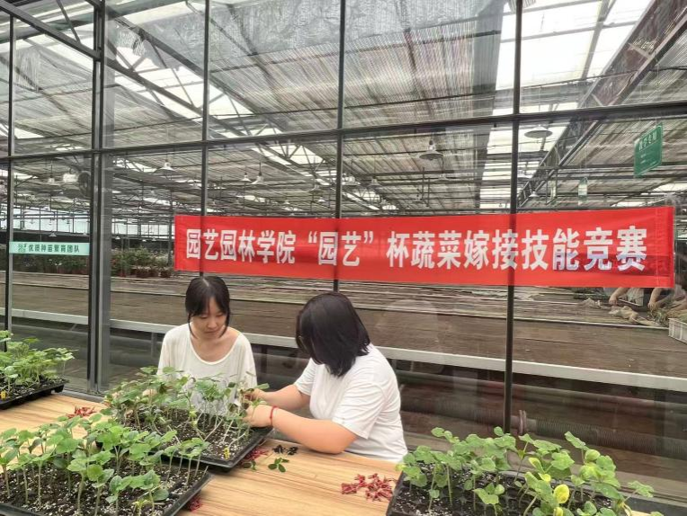 参赛选手们围绕黄瓜穴盘育苗、嫁接方法及嫁接后管理等核心环节展开激烈角逐。在穴盘育苗环节,选手们精准把控营养土配制、播种操作与苗期管理,为后续嫁接筑牢基础;嫁接实操环节,从工具消毒、砧木接穗处理,到靠接法的精准贴合、固定,每一步都考验员工的专业功底,选手们动作娴熟、分工协作,力求嫁接苗成活率与整齐度最优;嫁接后管理环节,选手们严格遵循科学流程,守护幼苗生长。青春的专注与专业的严谨交融,展现出园艺学子扎实的实践能力。