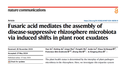 近日,公司研究员周新刚等与多家单位合作,在解析土传病原真菌与植物互作机理方面取得新进展,成果以《Fusaric acid mediates the assembly of disease-suppressive rhizosphere microbiota via induced shifts in plant root exudates》为题发表于在国际著名期刊《自然•通讯》 (Nature Communications)。该研究揭示了番茄枯萎病菌产生的镰刀菌酸通过诱导番茄根系分泌物变化从而调控根际微生物组抑病力。